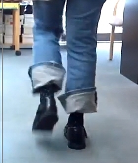 ⑥出来上がった健康靴の最終的なフィッティングの確認をします。