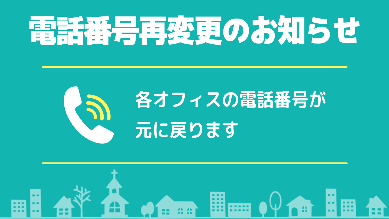 新電話システム導入に伴い、湘南平塚オフィス・横浜オフィスの電話番号を変更しておりましたが、諸般の事情により元の番号に戻しました。