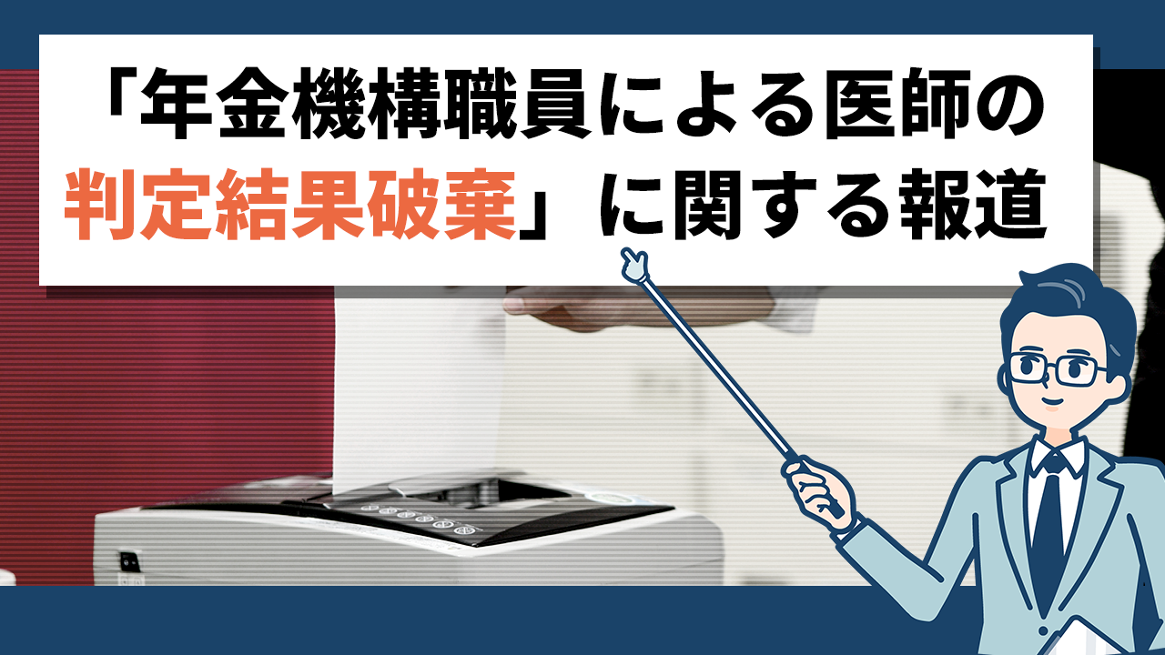 年末年始の「年金機構職員による医師の判定結果破棄」の報道について、不安に思われた方からのご相談をいくつかいただきましたので、報道の概要説明と当社の見解をお話します。
