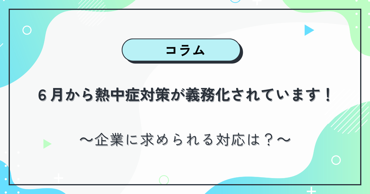 以前のコラムでも書きましたが、6月1日より職場の熱中症対策が強化され、一定の条件を満たす作業環境では企業の対策の義務が課されています。