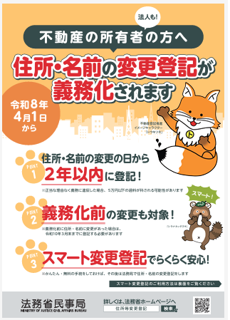 尚、過去の変更も対象であり、 2026年4月の施行日より前に住所や氏名が変わっていた場合も、施行日から2年以内(2028年3月31日まで)に登記を行う義務があります。