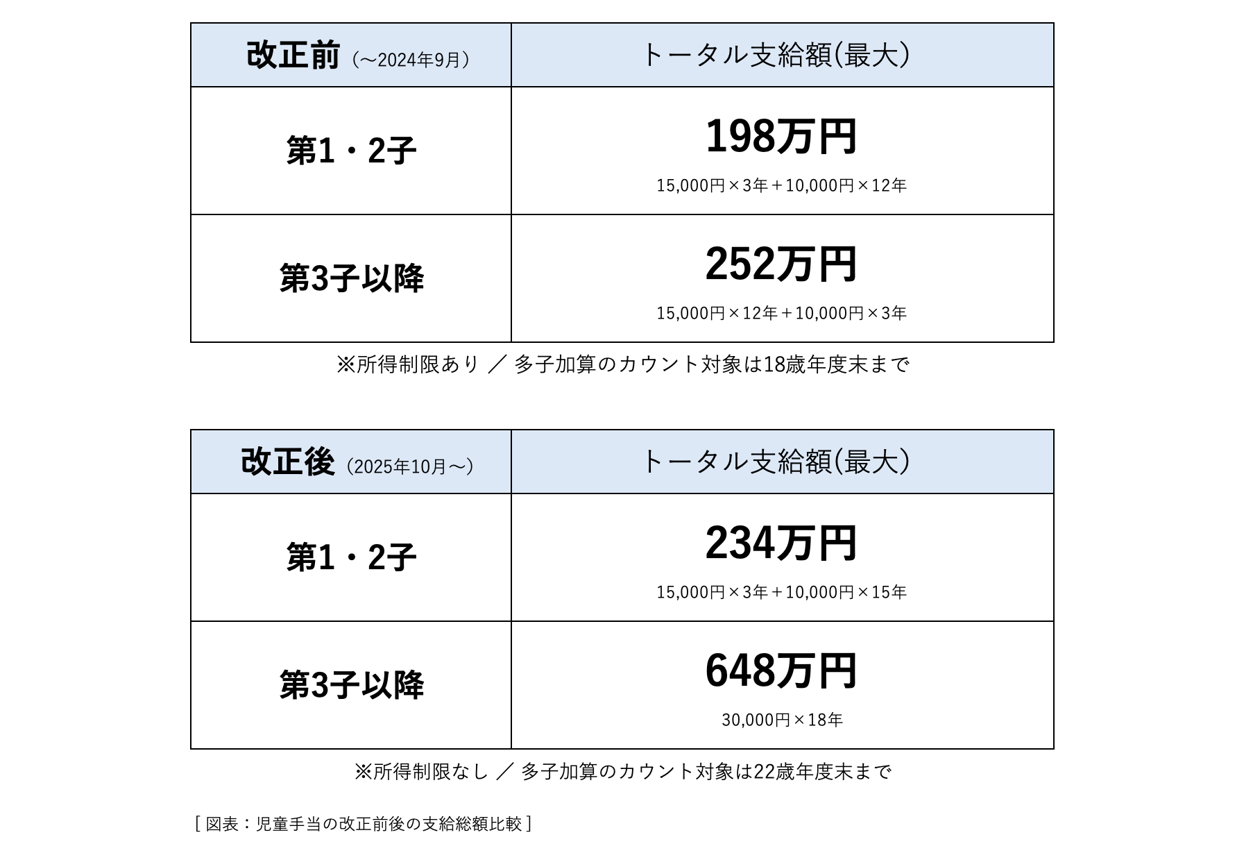 ちょうど昨日も教育資金準備のご相談をお受けしていたのですが、その場でも児童手当の改正の話になりました。昨年の改正ですが、金額をあらためて整理してみると「こんなに大きな支援だったのか」と驚かれる方は多いです。ここで改めて確認してみましょう。