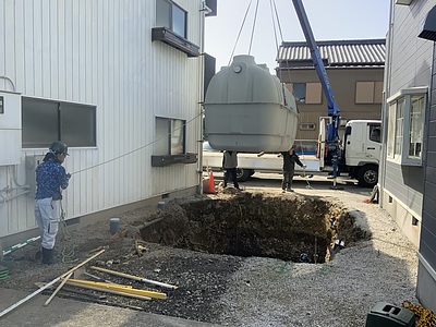 そのまま浄化槽を吊り降ろして
