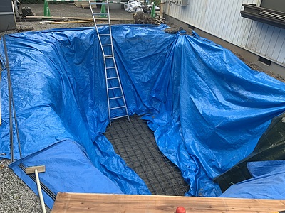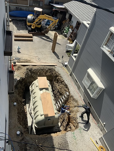 浄化槽を埋めるまでにまさかの雨もあり