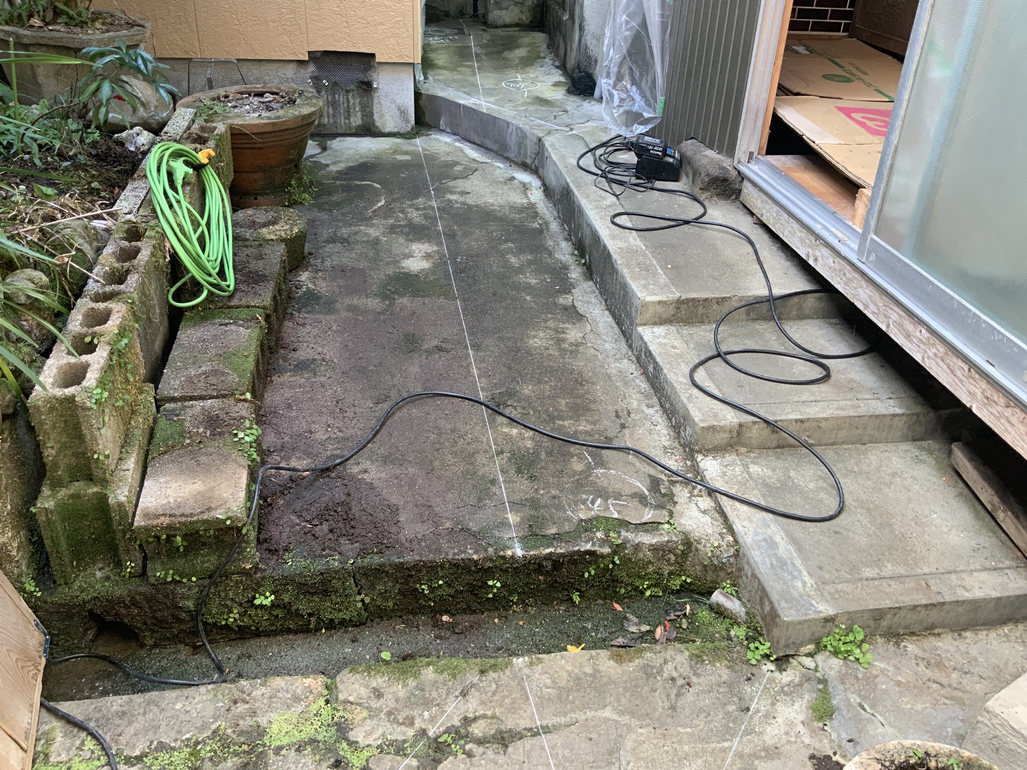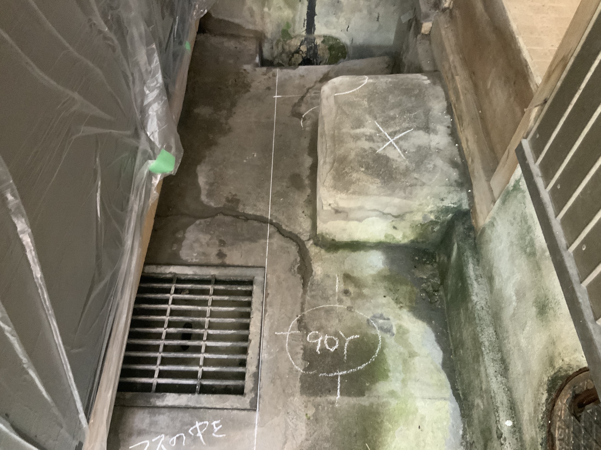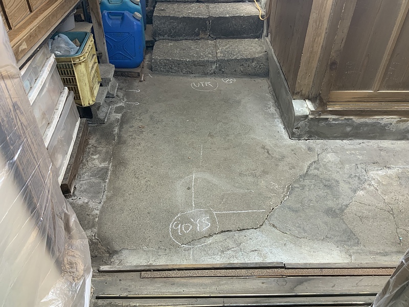 もちろんその手前に見えているタイルの段から撤去してトイレまで全てフラットに
