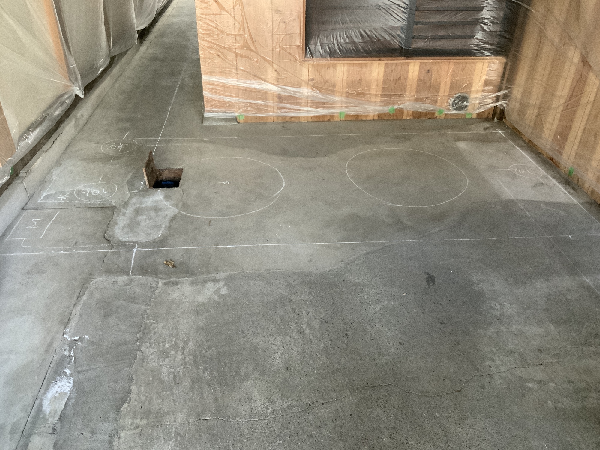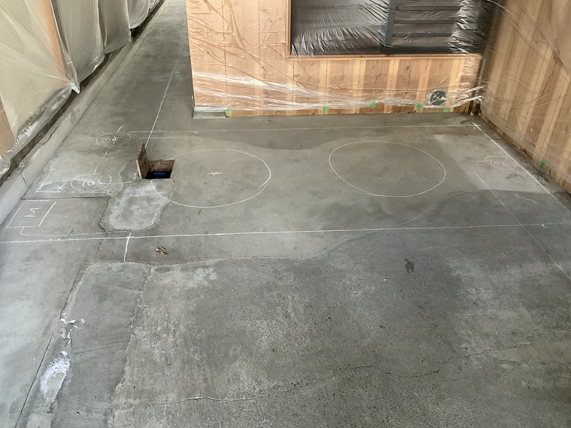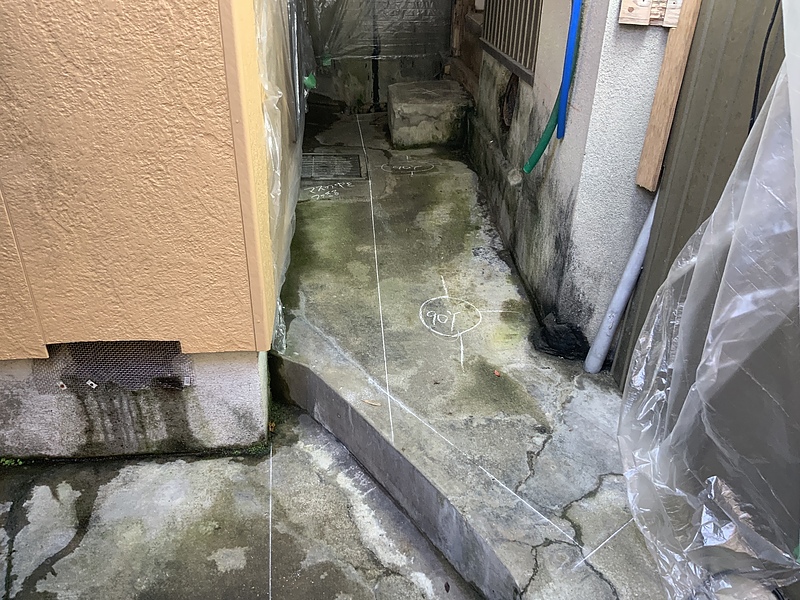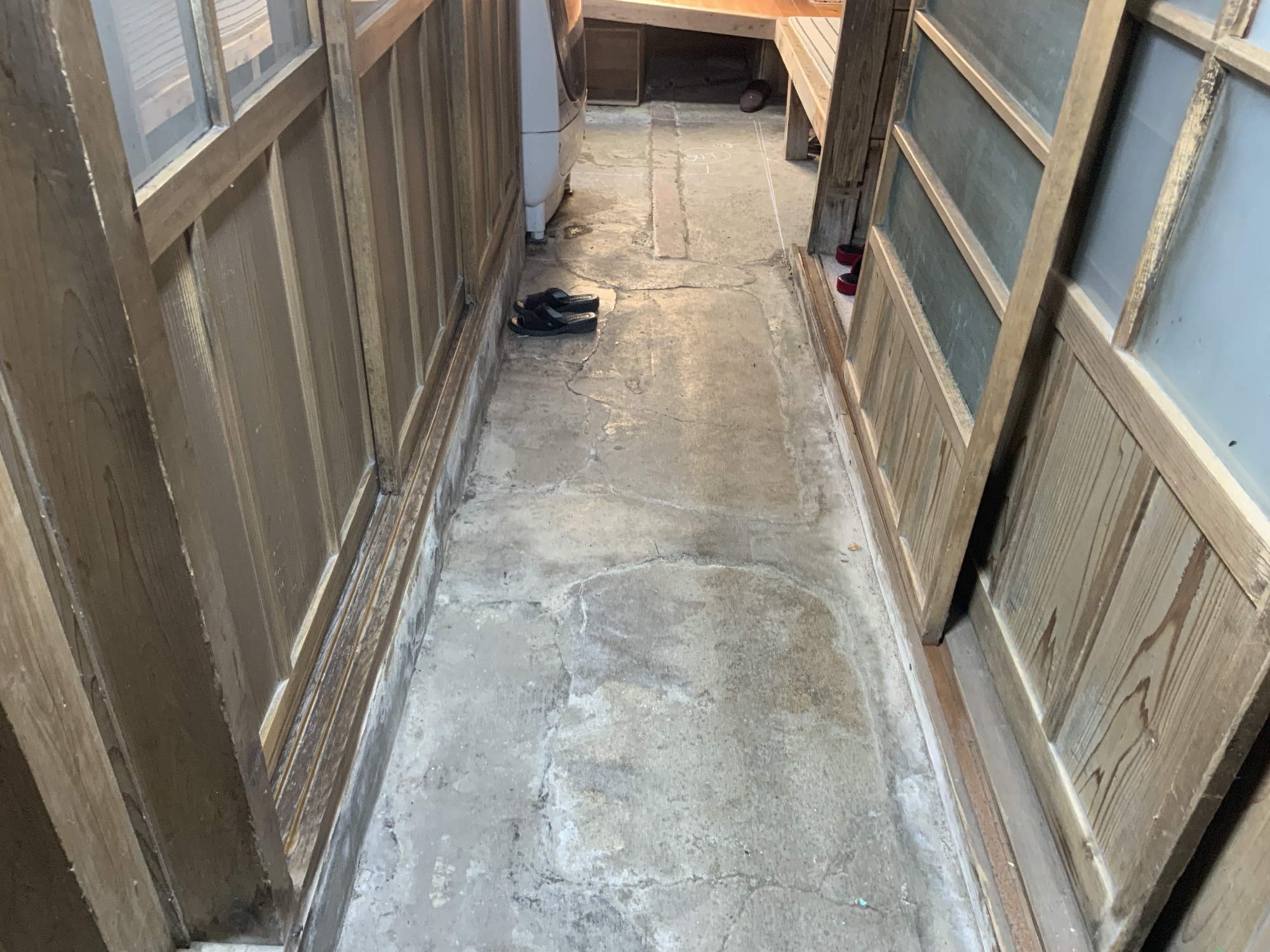 もちろんその手前に見えているタイルの段から撤去してトイレまで全てフラットに