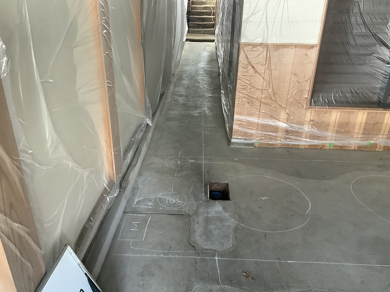 手洗とその横の壁は撤去するけど、上り坂の廊下と木のオブジェ?は触りたくない(´-∀-`;)
