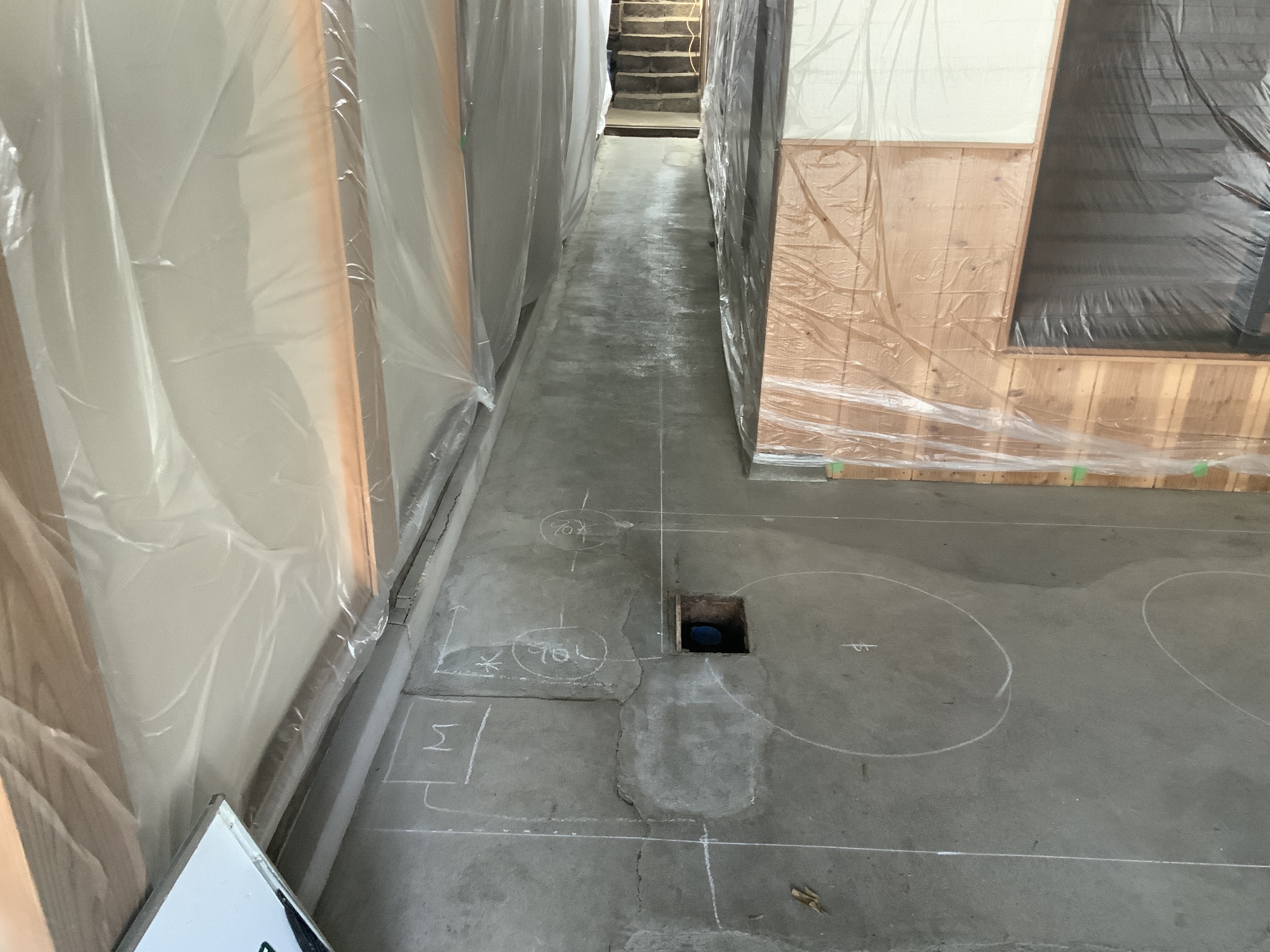 ここも施主さんの希望で、洗面化粧台をつけることになったので、段の上で拾って
