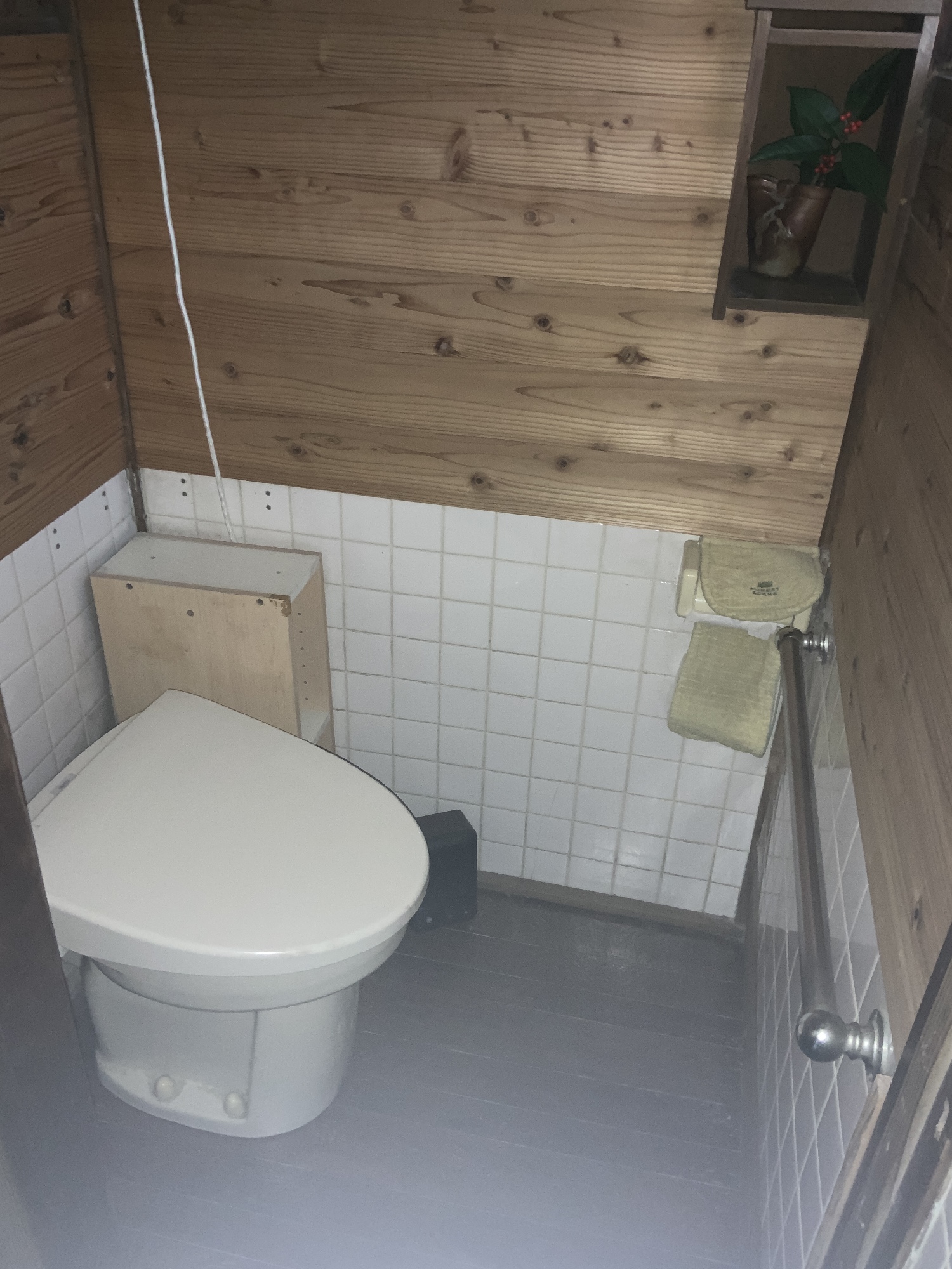ギネスには認定されんろうけど、通路にピッタリと木造の水洗トイレが出来ました!
