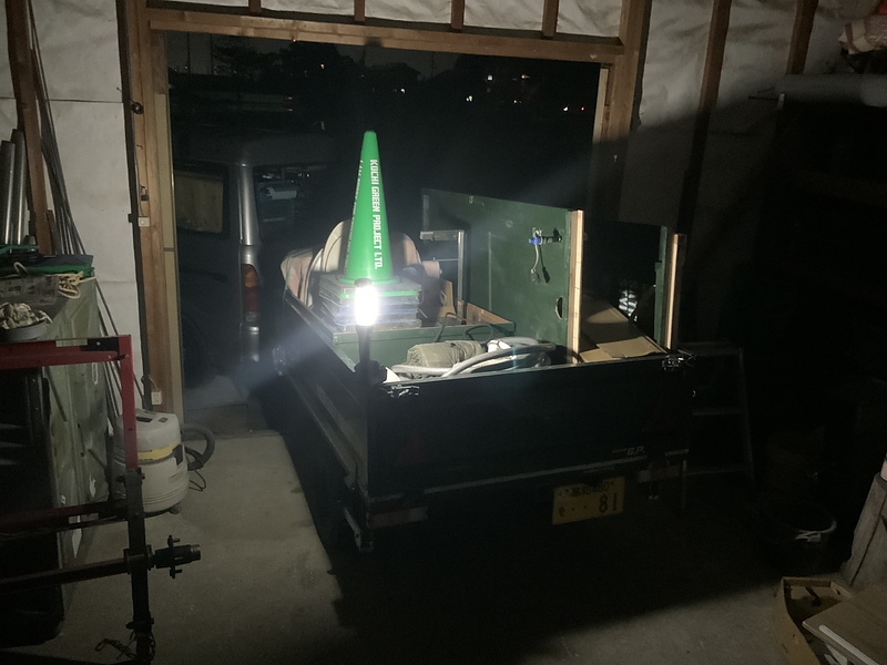 で、日も暮れてから明日のイベントに飾る予定の仮設トイレを積込みにいったんやけど・・・