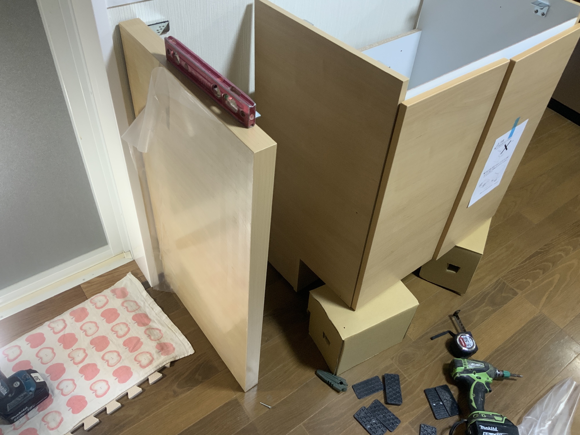 これが組み立て式で、壁、床がまっすぐやないので水平垂直にするのにむっちゃ時間かかった