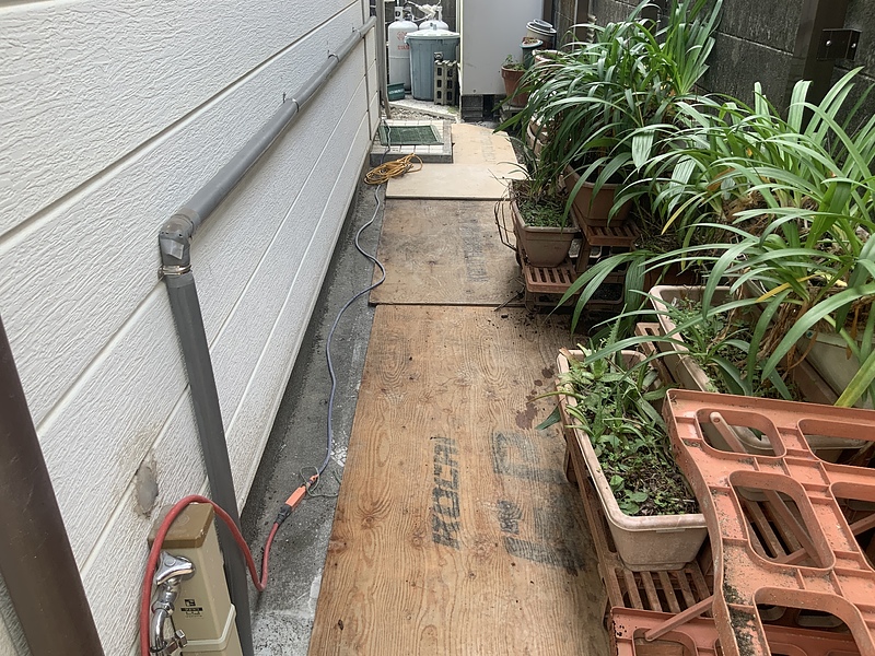 家の周りをぐるりと配管せないかんので、切って吸うて、割って吸うて