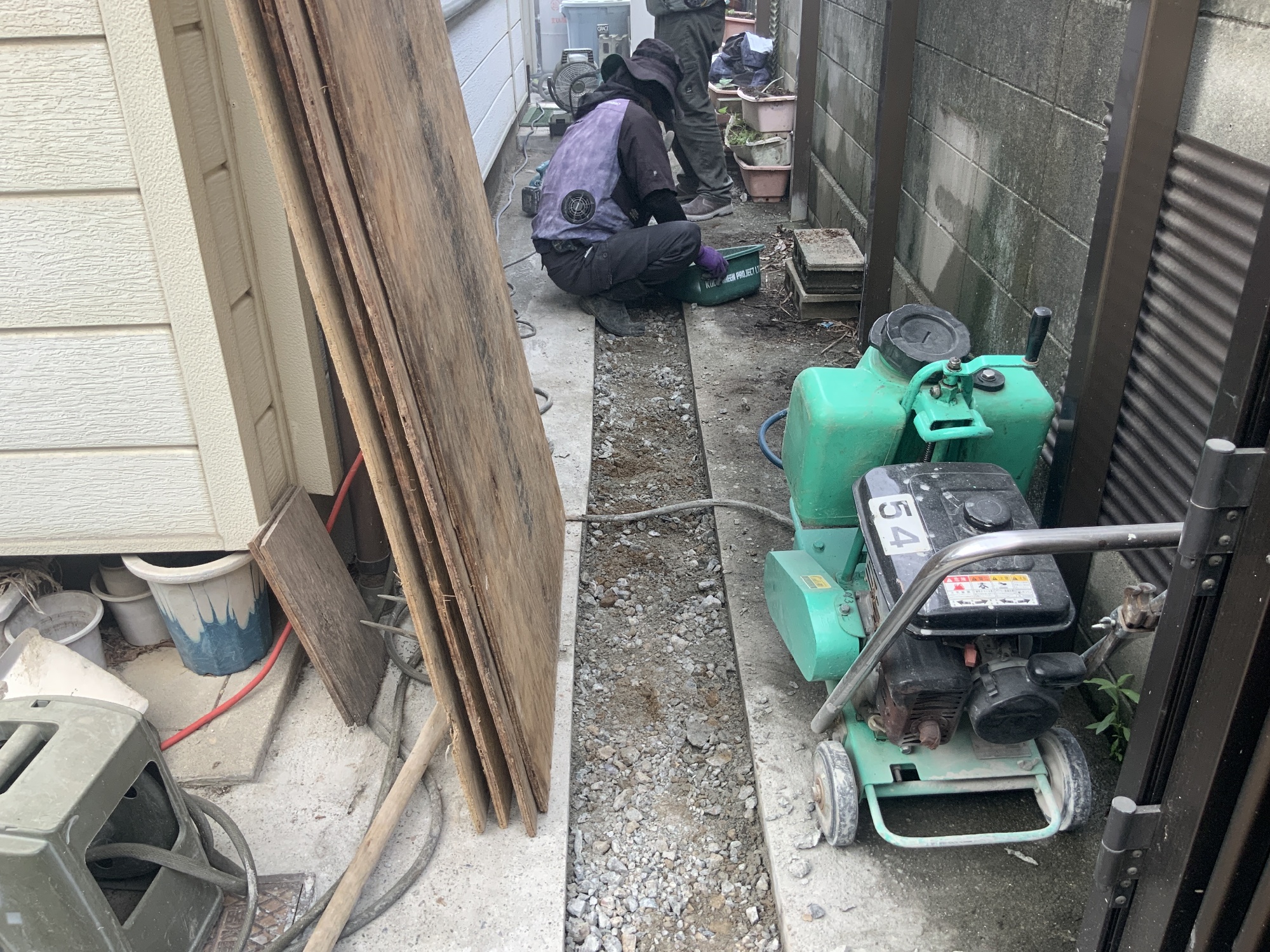 家の周りをぐるりと配管せないかんので、切って吸うて、割って吸うて
