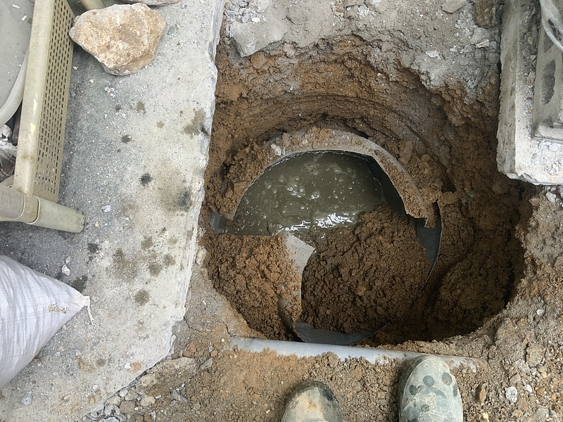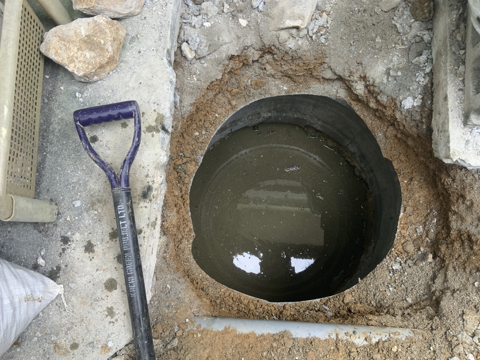 『このあとは、先に下側を切り取るんですが、どうも地下水が高いようです。切り込み入れたら水が入ってきました。なんせ5ポンの場所です』
