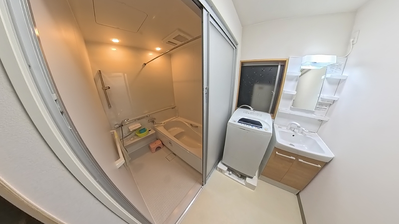脱衣場に出てきたお風呂の壁を最小で抑え、