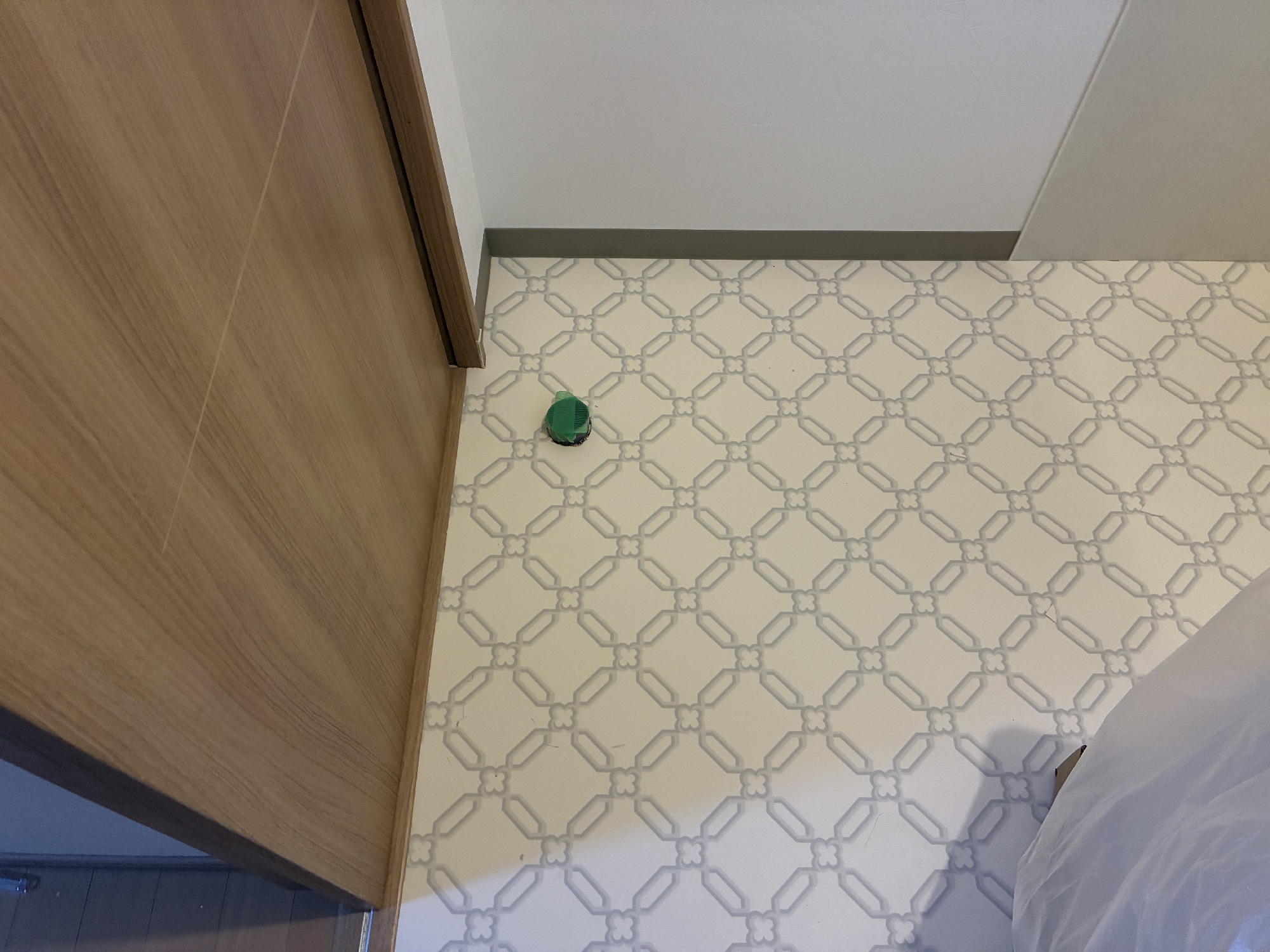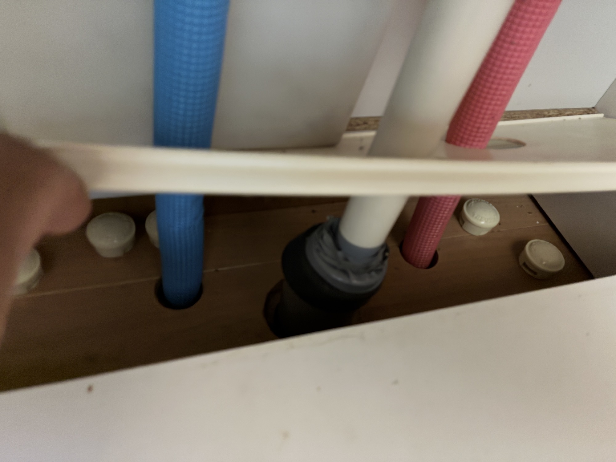 それを置く前に、配管と床の隙間を埋めるのが先ですよー(;´∀`)