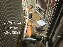 樋も土の中で終わっていたので、既存の浄化槽の放流管を使って流れるように接続しました。