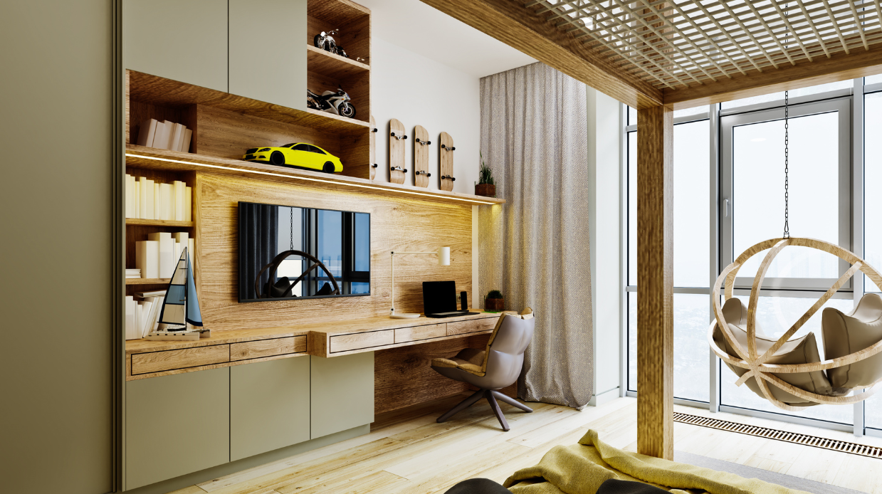 成長したら学習スペースに変えられる可変性のある間取り。