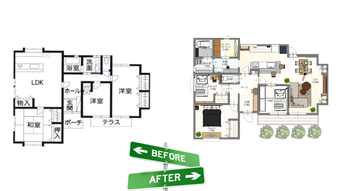 築35年平屋フルリノベーション/ LDKを4倍超の広々快適な空間に