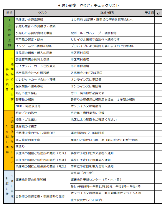 「早めの準備」「混雑期を避ける工夫」「チェックリストの活用」を意識すれば、新生活を気持ちよく始められるでしょう。