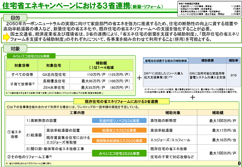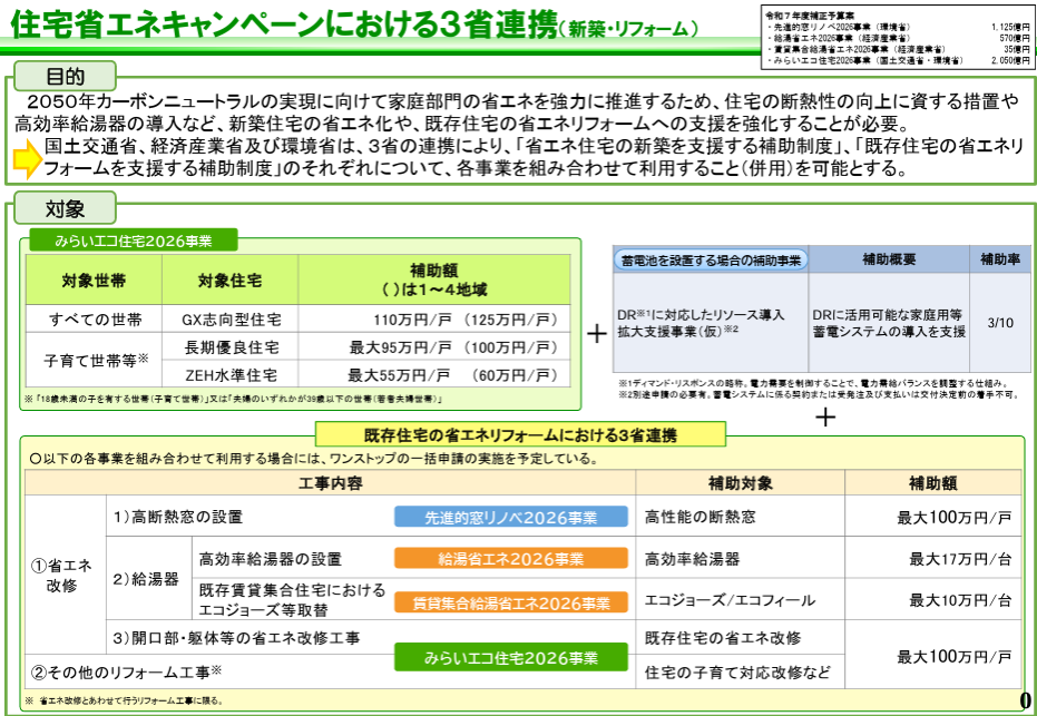 これにより、2026年も断熱リフォーム/窓の断熱改修/高効率給湯器 など、既存住宅の省エネ改修が支援される見通しです