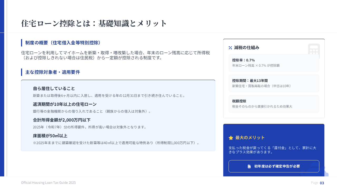 2025年に住宅を購入された方は、初年度の確定申告を行うことで、住宅ローン控除を受けることができます。
