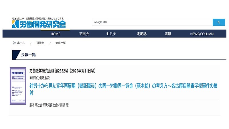 労働法学研究会報とは、株式会社労働開発研究会が発行している冊子です。