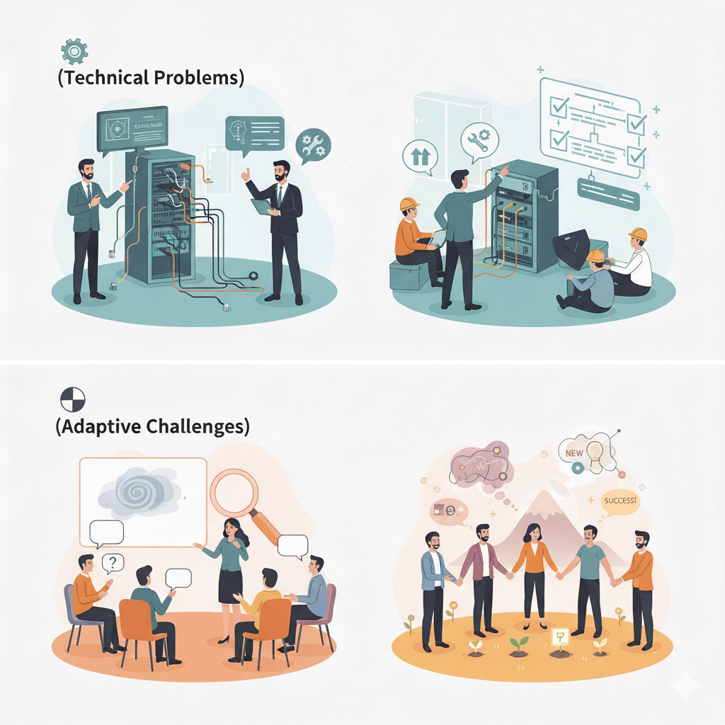適応課題とは、既存の知識や手順では解決できず、組織や個人(特に経営層や従業員)の価値観、行動、役割、関係性を変革することによってのみ対応可能な複雑で不明確な課題です。