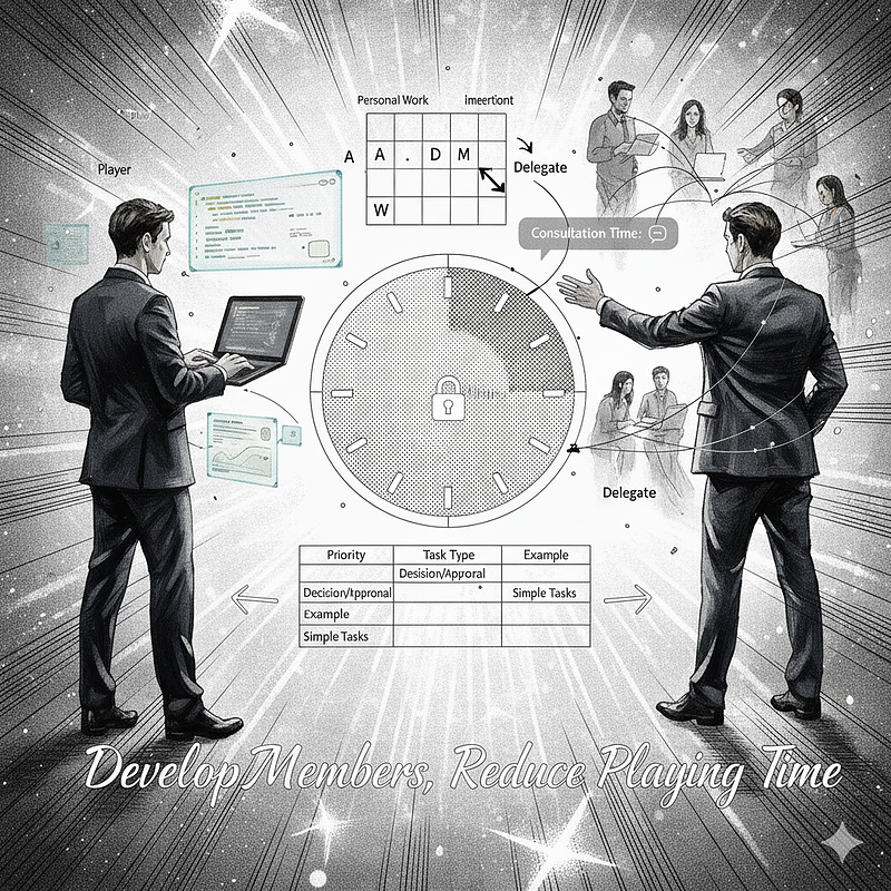・タスクの峻別: 全タスクを洗い出し「プレーヤー業務」と「マネージャー業務」に明確に分類します。