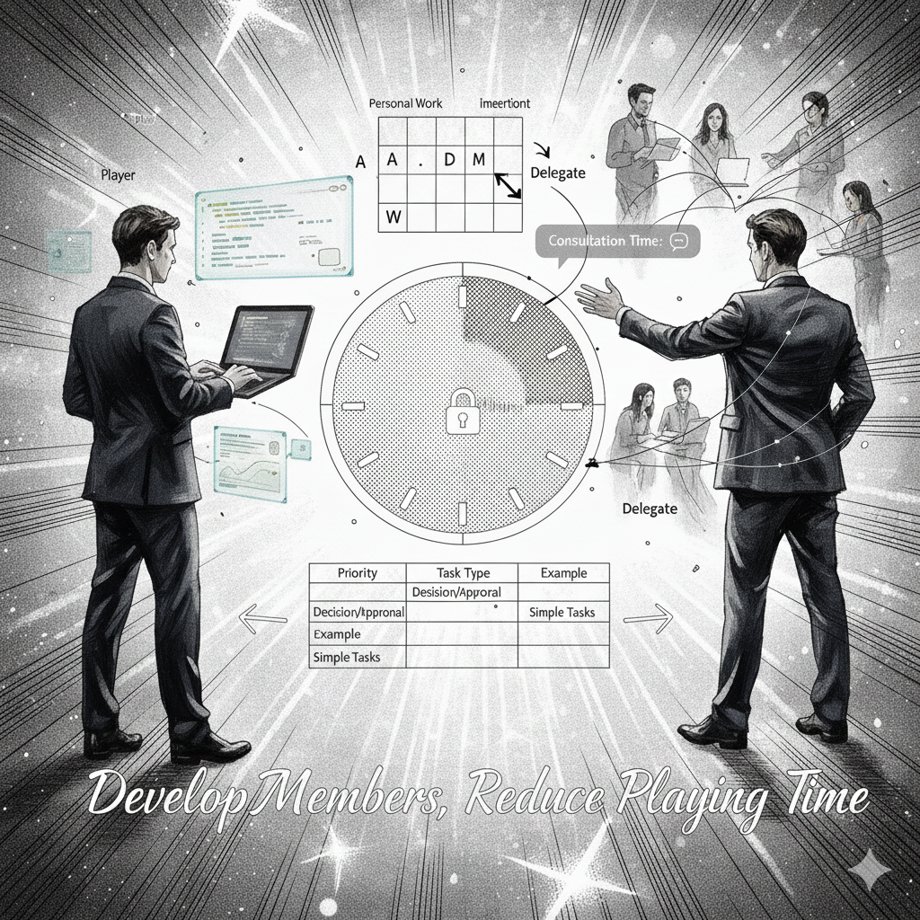 ・タスクの峻別: 全タスクを洗い出し「プレーヤー業務」と「マネージャー業務」に明確に分類します。