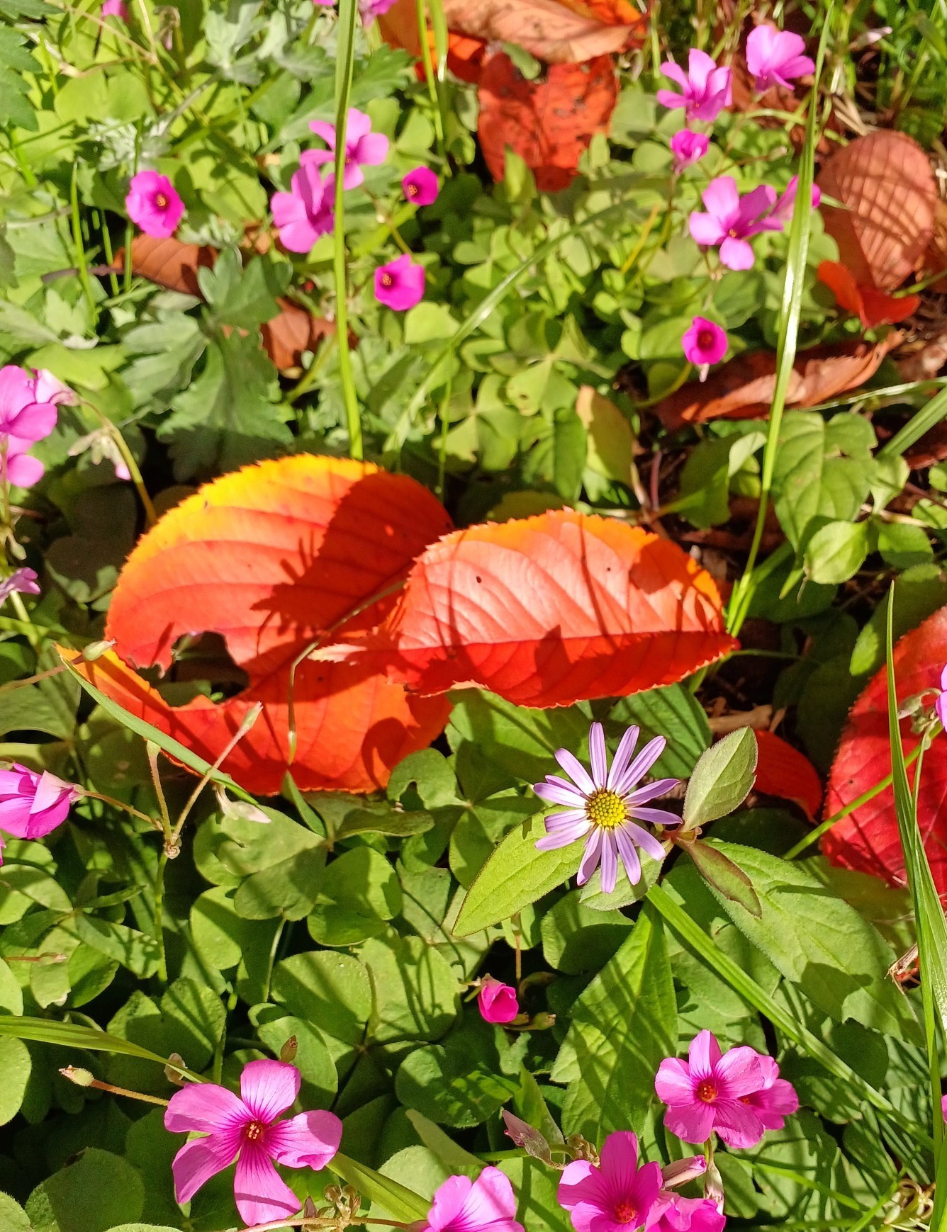 どこにでもある色とりどりの草花ですが、たいそう美しいです。