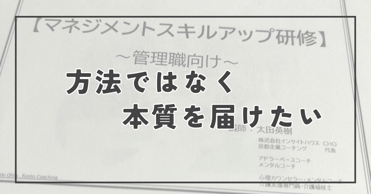 私の仕事の本質は、講師業でもなければ、コーチング業でもなく、それらは方法に過ぎず、