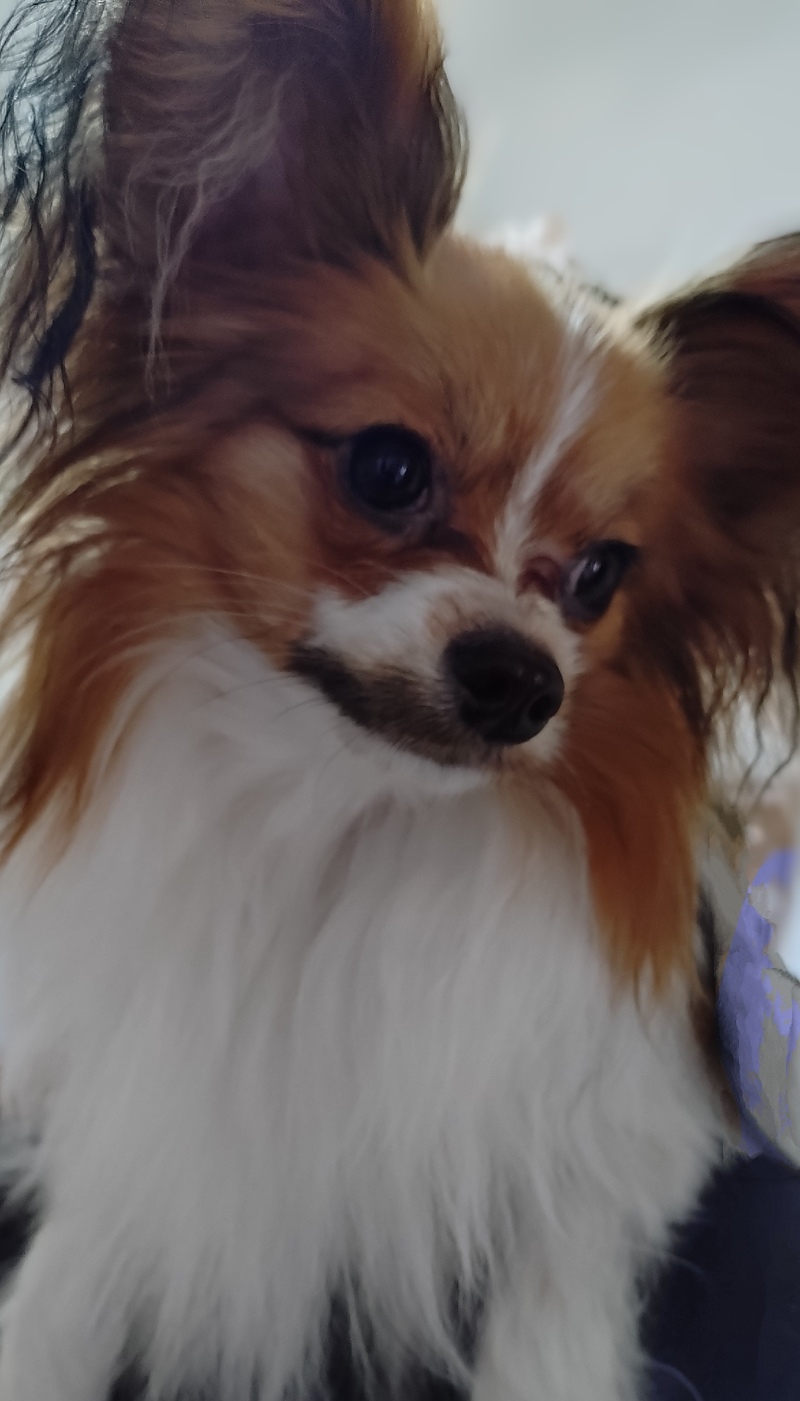 最初に来た頃はパピヨンとして最もかわゆくない時代であったので(子犬から成犬になる途中で毛が抜けてみすぼらしくなる時期)、だいぶかわゆくなってきた。