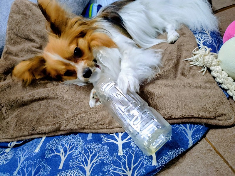 ペットボトルを朝からカミカミしている3代目小次郎である。