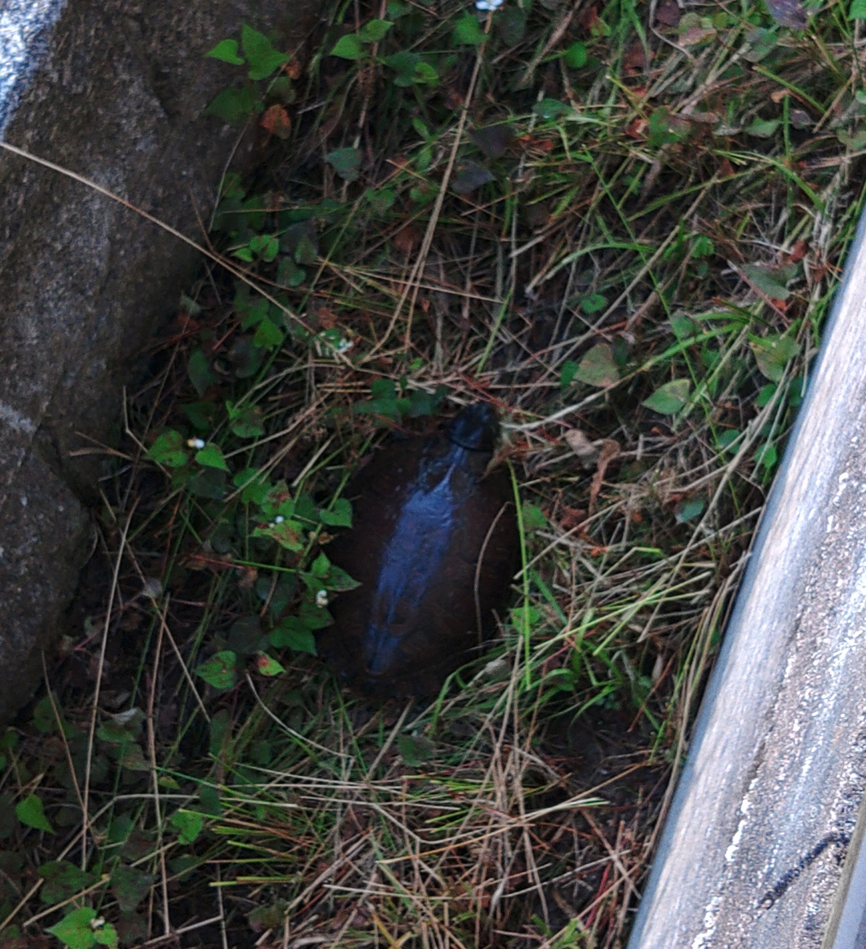 毎日同じような話で恐縮だが、自宅の横の溝をごそごそしている音が聞こえたので覗いてみると、亀であった。