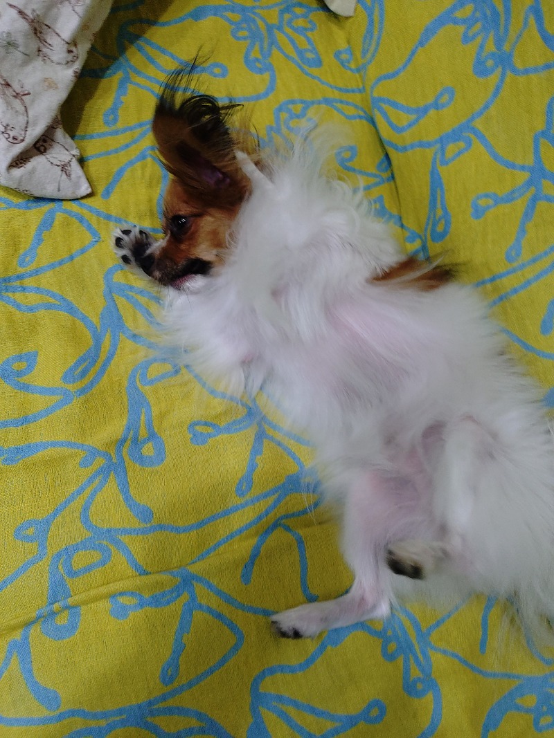 変なポーズとなっているのは、ゴロンゴロンの途中を切り取ったためである。
