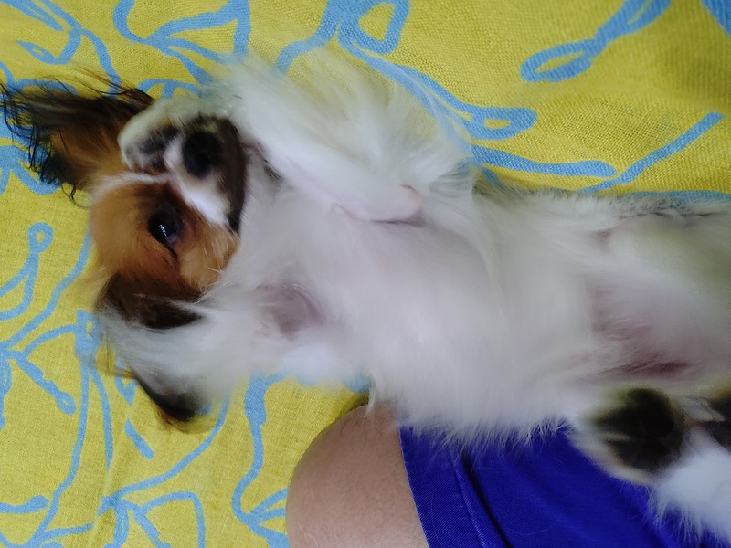 朝、ソファーの上で私にくっつきながら、ゴロンゴロンとしている3代目小次郎である。
