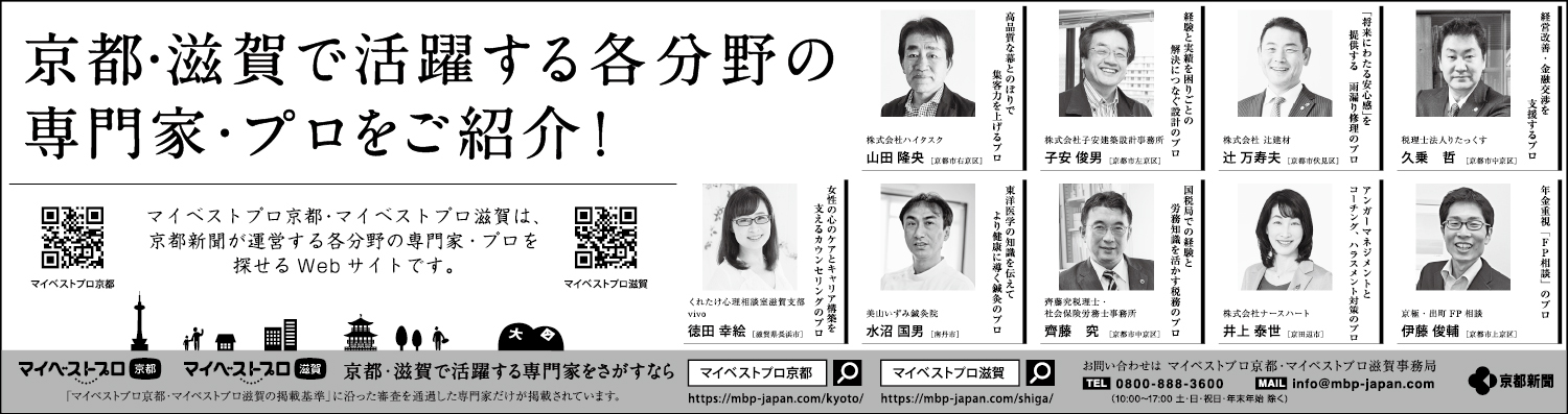 2025年4月17日(木)、4月30日(水)の京都新聞に「マイベストプロ京都・滋賀」の顔写真広告が掲載されました。