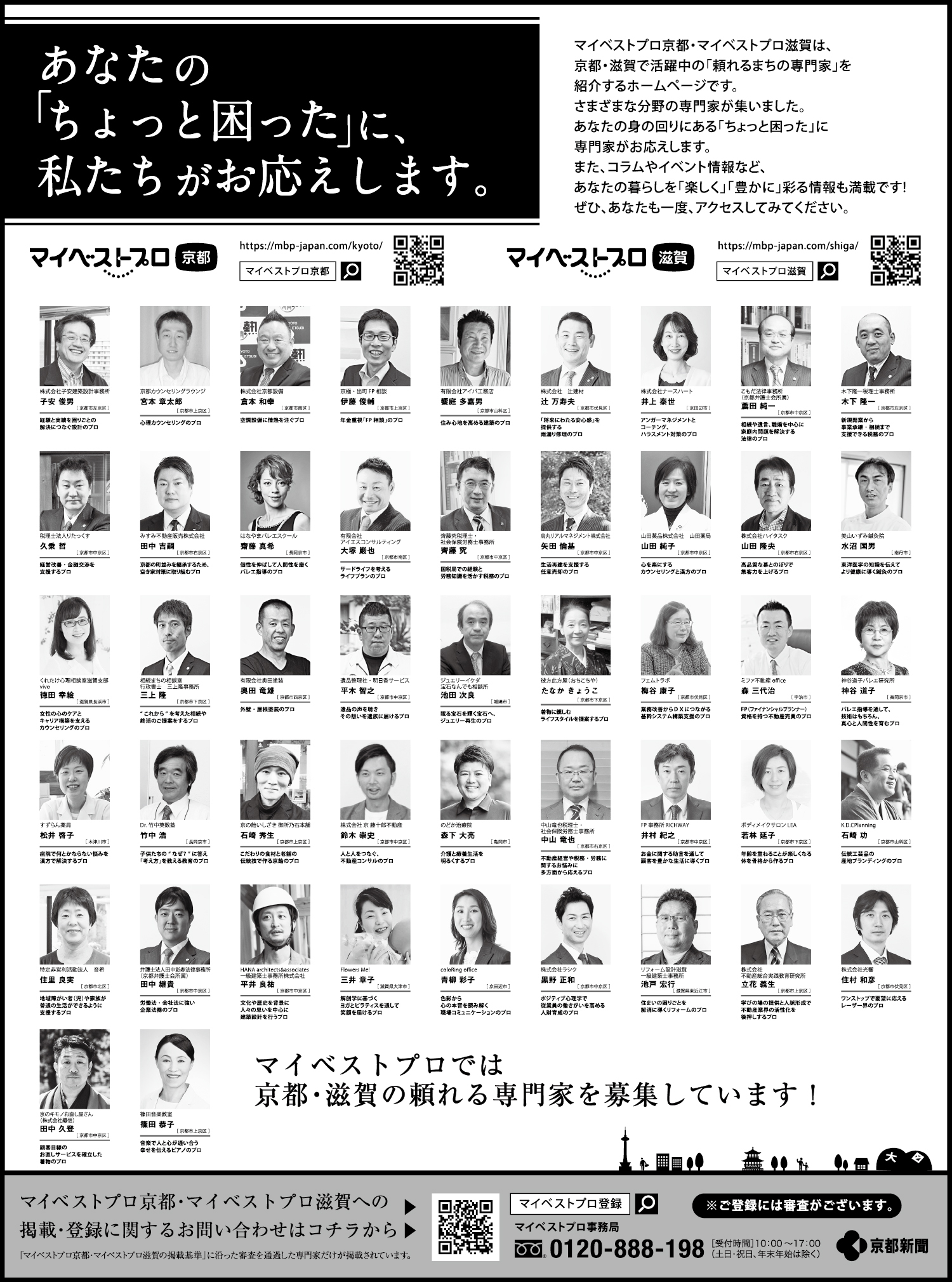 2025年9月1日(月)の京都新聞に「マイベストプロ京都・滋賀」の顔写真広告が掲載されました。