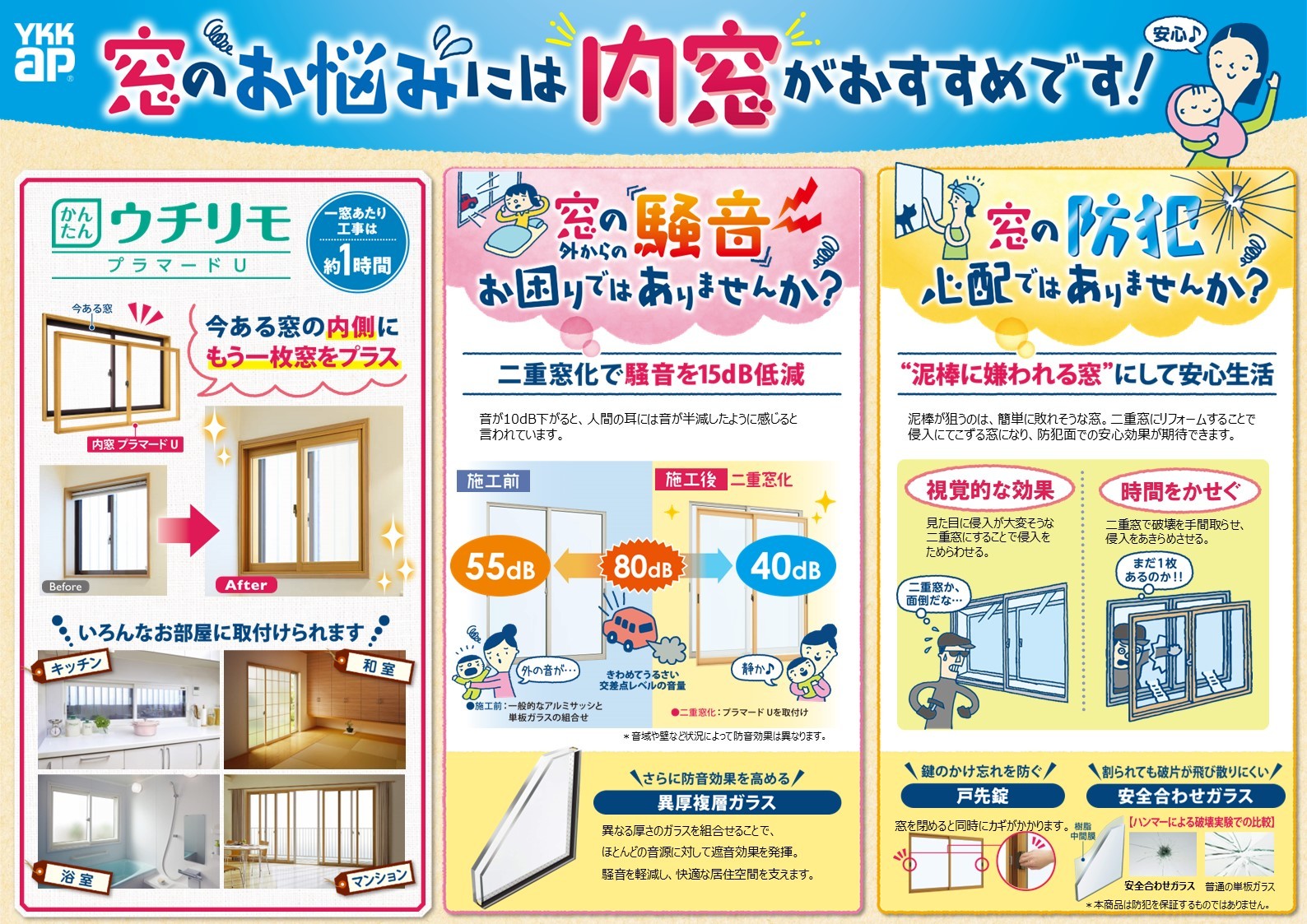 既設部分を壊すことなく 窓の内側に追加する工事で窓の性能がアップします。