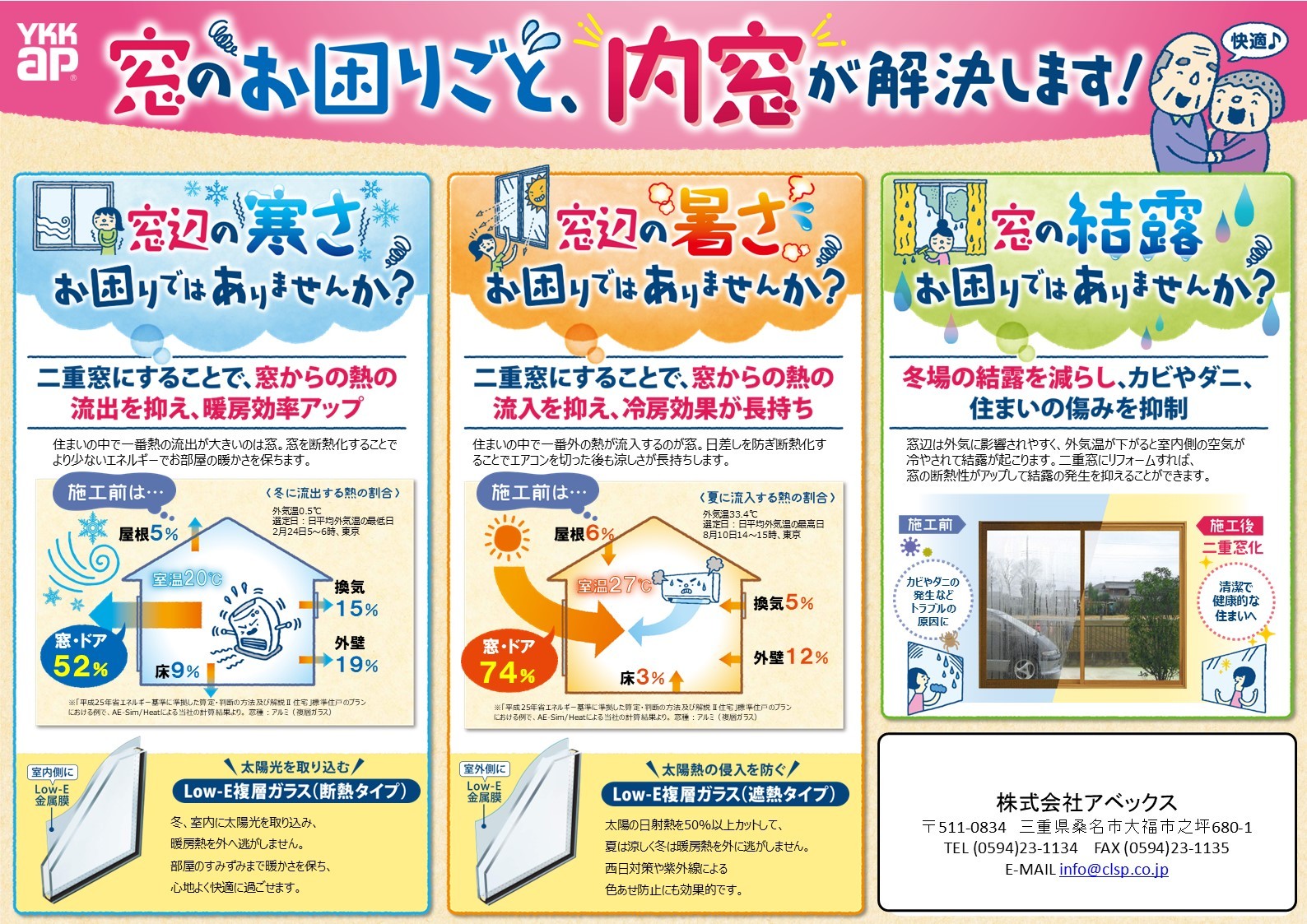 冬は窓からの熱の流出を抑え暖房効率アップし結露を減らし、カビ、ダニの抑制につながります。