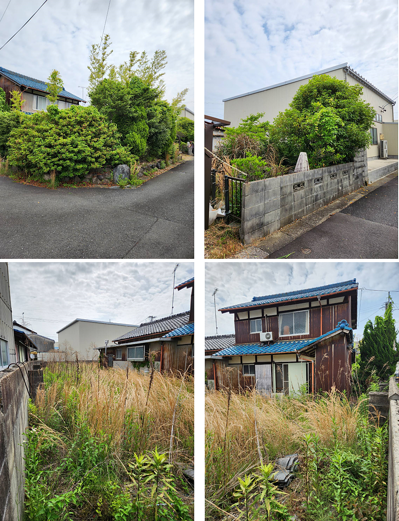 成長し過ぎた庭木はフェンスを曲げて道路まではみ出し、敷地内は全て、伸びきっては枯れることを繰り返した雑草で埋まっていました。