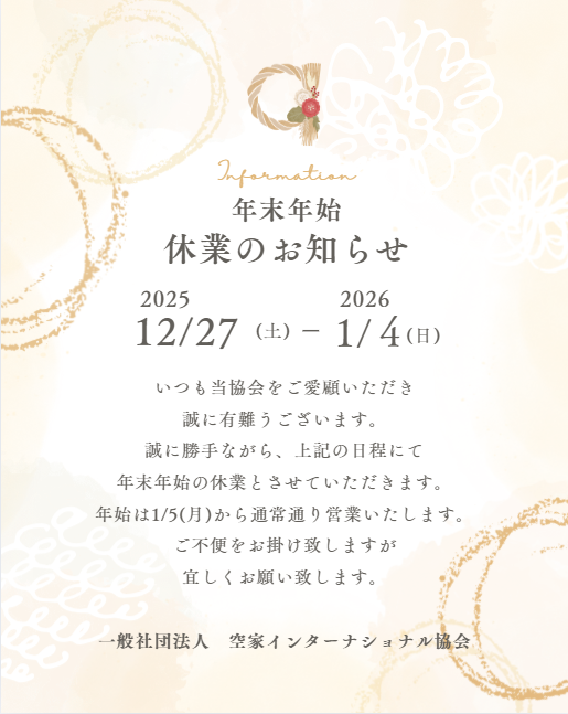 上記期間に頂いたお問い合わせにつきましては、2025年1月5日(月) 以降のご返答とさせていただきますこと、ご理解いただけましたら幸いです。