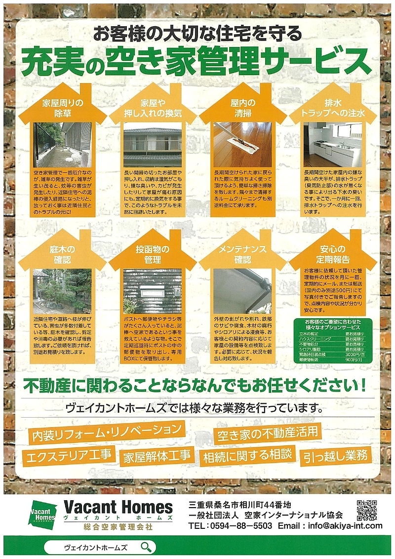 空き家管理の不安は、空家インターナショナル協会へいつでもご相談ください。