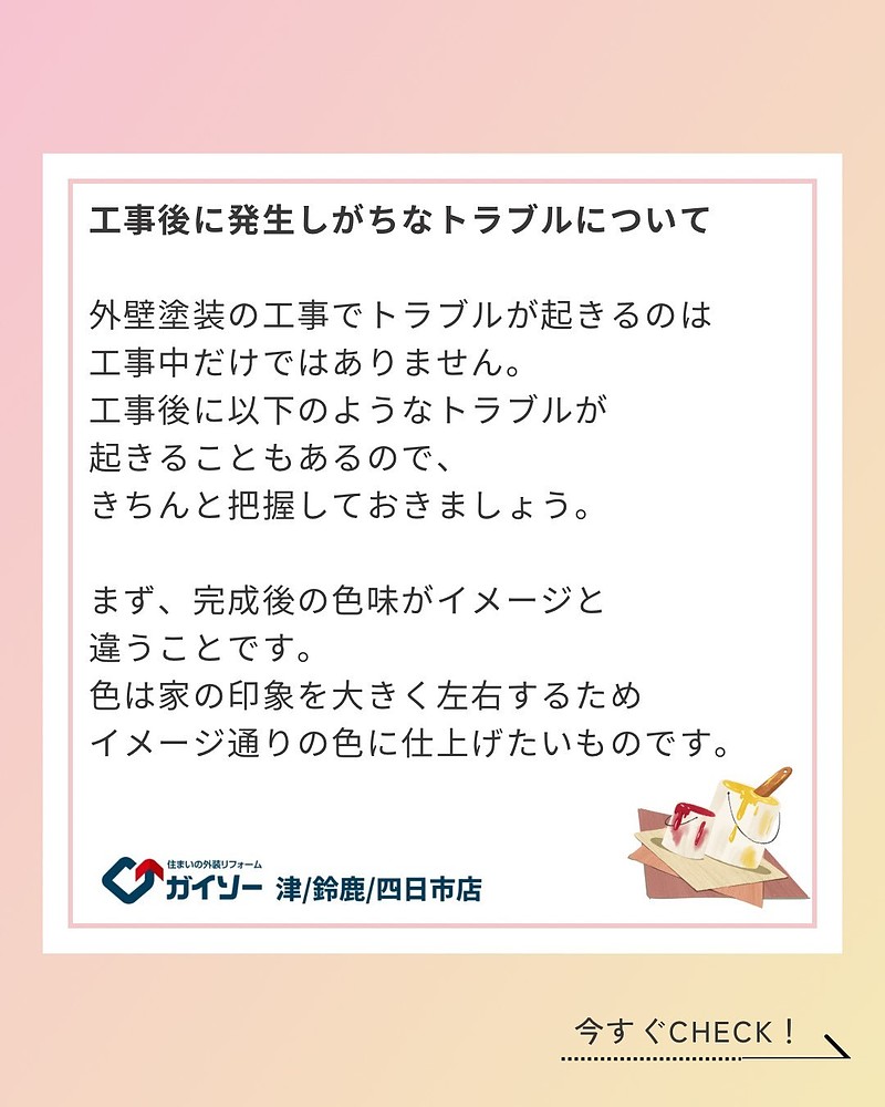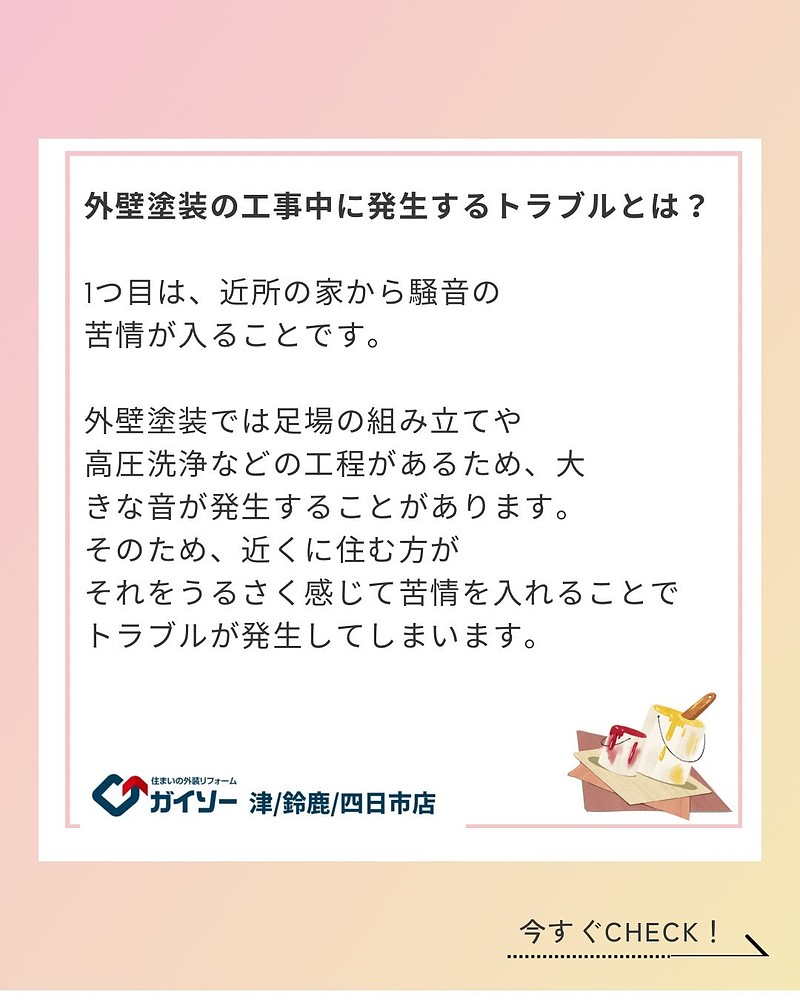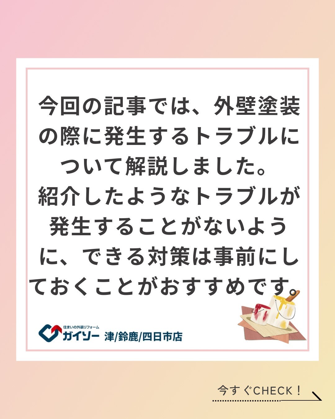 そこで今回は、外壁塗装の工事中や工事後に発生するトラブルについて解説します。
