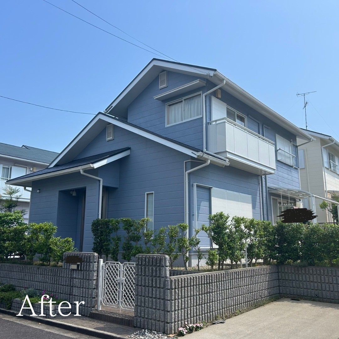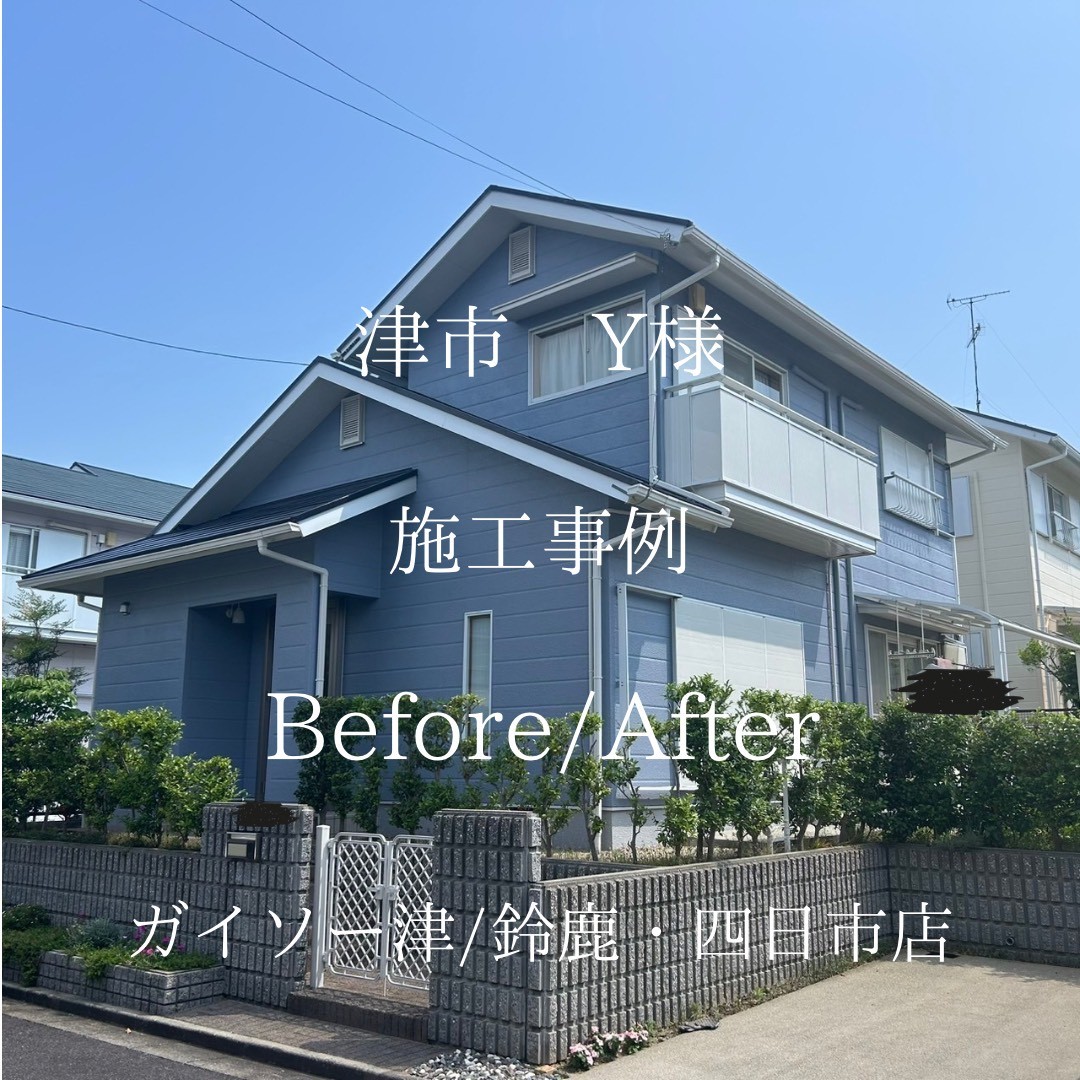 津市Y様邸外部塗装工事、破風板金、玄関ドア交換、完工いたしました。