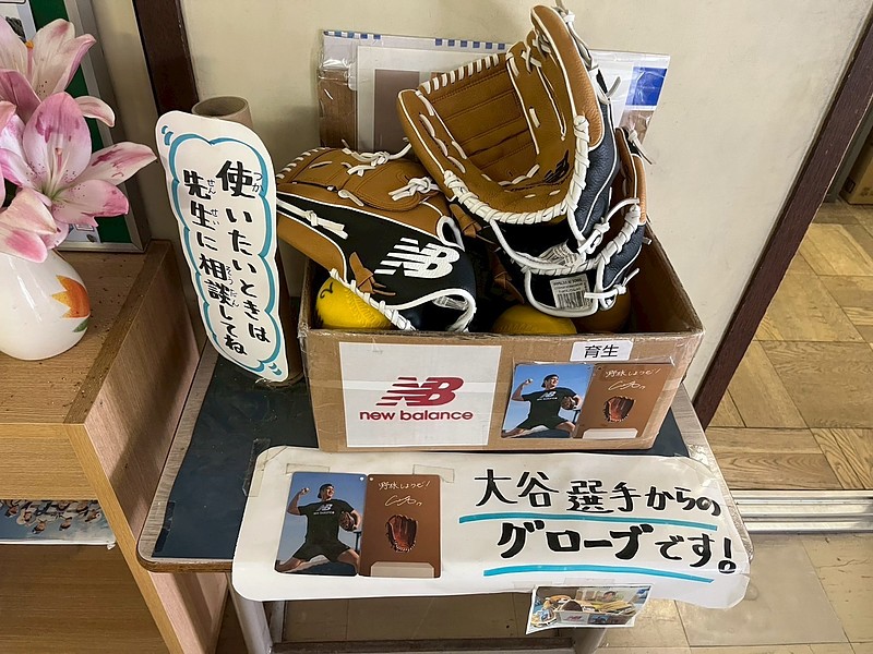なんと大谷選手が、子どもたちに向けたグローブが、飾られておりました。