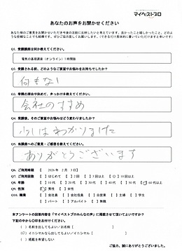 回答:ありがとうございます