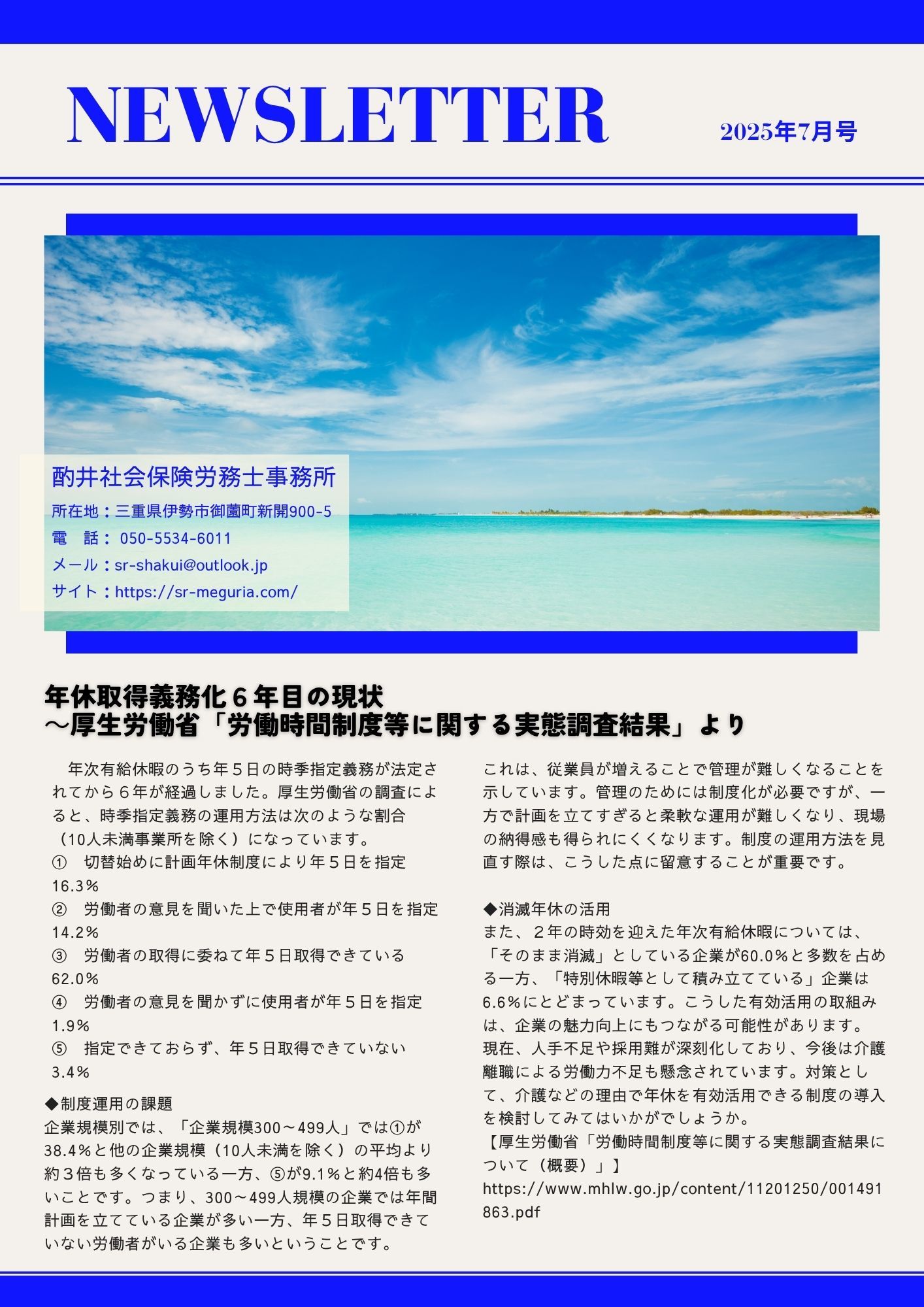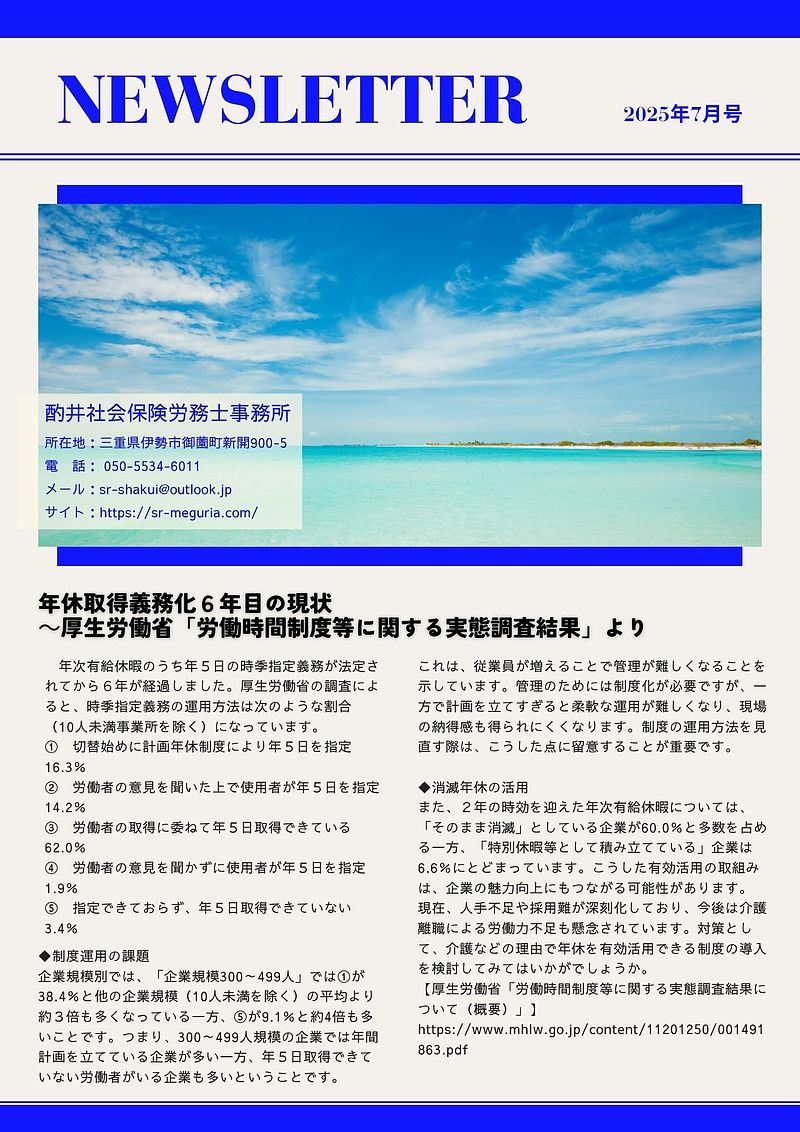 年次有給休暇の取得、従業員の待遇に関することなら、酌井社会保険労務士事務所にお任せください!