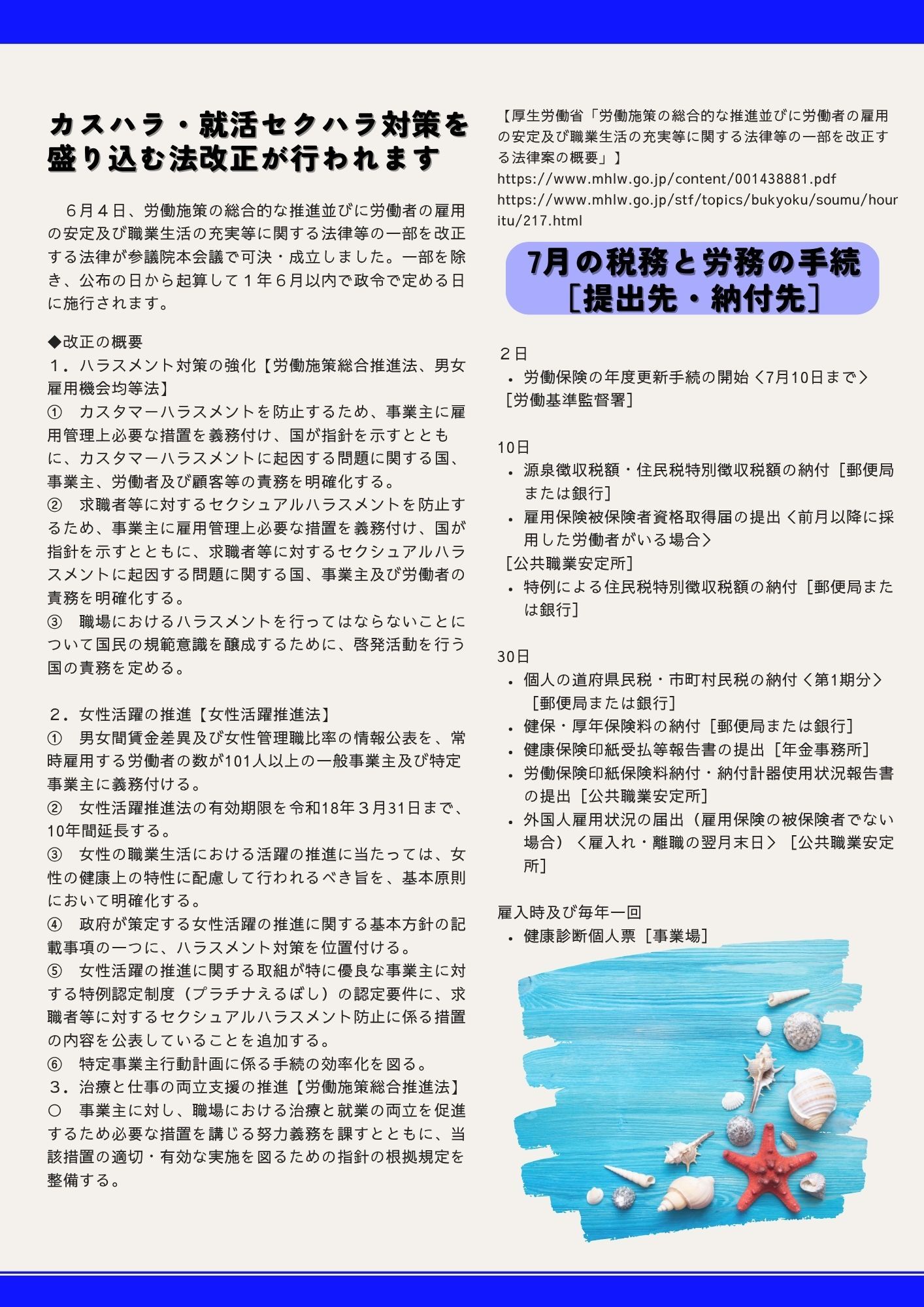 1.ハラスメント対策の強化【労働施策総合推進法、男女雇用機会均等法】